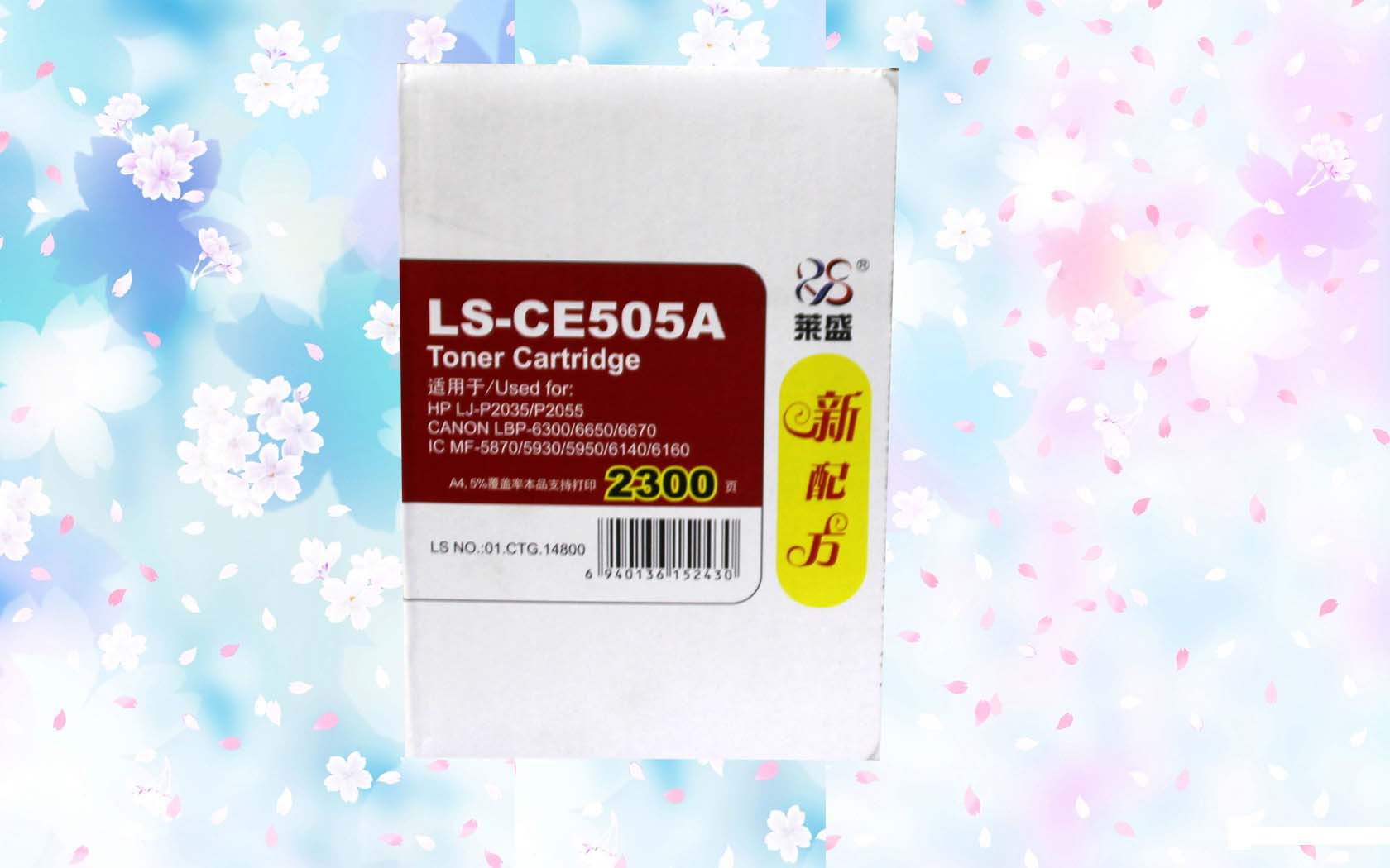 品牌萊盛打印頁數(shù)2300頁型號(hào)LS-CE505A打印幅面A4(5%覆蓋率)顏色黑色保質(zhì)期18個(gè)月適用于惠普P2035 P2055dn 佳能6300打印機(jī)